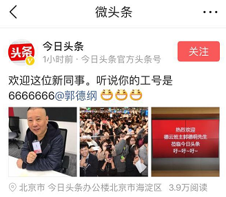 不但如此,郭德綱入職今日頭條后,他們可以在內(nèi)容上進(jìn)行進(jìn)一步的而合作,好比今日頭條為德云社提供平臺(tái),可以征集相聲段子,可以做定制的脫口秀節(jié)目,甚至都可以舉辦相聲大會(huì)。在這背后,郭德綱的德云社可以繼續(xù)發(fā)展壯大。社團(tuán)的業(yè)務(wù)也可以多線程發(fā)展,弟子們不僅單可以上節(jié)目,在今日頭條也可以做短視頻進(jìn)行傳播,甚至可以快速成為紅人。而今日頭條則可以聚焦相聲類型的內(nèi)容,更加專業(yè),更具影響力。難得的是,以此為例還可以進(jìn)行其他類型項(xiàng)目的深度挖掘,好比傳統(tǒng)手藝人、民間高手等差別職業(yè)、身份的藝人都可以在今日頭條上得到傳播,同時(shí)還能間接促進(jìn)文化的傳承。