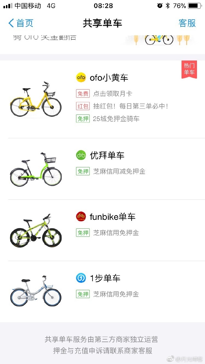 巨人網(wǎng)絡(luò)通訊聲明:本文標(biāo)題《小藍(lán)單車被爆人去樓空 支付寶已下架其免押金共享單車辦事》,本文關(guān)鍵詞 小藍(lán),單車,被,爆,人去樓空,;如發(fā)現(xiàn)本文內(nèi)容存在版權(quán)問題,煩請?zhí)峁┫嚓P(guān)信息告之我們,我們將及時(shí)溝通與處理。本站內(nèi)容系統(tǒng)采集于網(wǎng)絡(luò),涉及言論、版權(quán)與本站無關(guān)。
