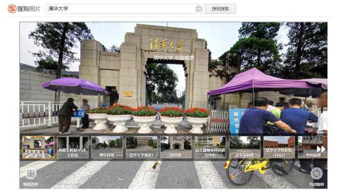 除了讓用戶全面了解景點(diǎn)的實(shí)地信息,“全景圖片瀏覽”功能還可以幫手用戶快速了解高校地理信息。無(wú)論是報(bào)考新生、學(xué)生家長(zhǎng),還是在校師生或者社會(huì)各界人士,“全景圖片瀏覽”功能可以幫手你提前了解高校的校園環(huán)境,以及各個(gè)樓室建筑的地理信息。如果你想提前了解清華大學(xué)的校園環(huán)境,或者想知道金陵大學(xué)舊址在南京大學(xué)中的具體方位,你只需在搜狗圖片頻道檢索“清華大學(xué)”、“南京大學(xué)”,即可得到兩所高校的全景景不雅觀,場(chǎng)景選擇功能則會(huì)幫手你更加細(xì)致、快速地了解高校校園。
