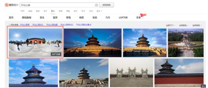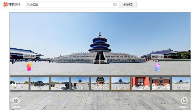 (圖:在搜狗圖片檢索“天壇公園”,點(diǎn)擊查看該景點(diǎn)全景圖)