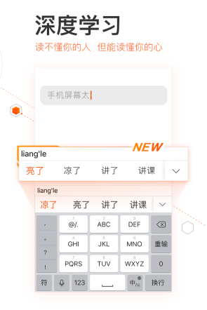 新版本搜狗輸入法,將新增中文LSTM深度學(xué)習(xí)語(yǔ)言模型,,讓輸入法擁有深度學(xué)習(xí)能力和語(yǔ)言模型的泛化能力。搜狗輸入法的核心引擎將利用LSTM語(yǔ)言模型,結(jié)合用戶輸入的上下文信息,提供更加智能的候選排序結(jié)果,實(shí)現(xiàn)情景感知。這種技術(shù)原理聽(tīng)起來(lái)很復(fù)雜,實(shí)際操作卻極為便捷,即“看懂”用戶輸入的文字。例如當(dāng)用戶輸入“手機(jī)屏幕太liangle”,傳統(tǒng)N元模型可能會(huì)結(jié)合上文“太”簡(jiǎn)單給出“涼了”作為首選,而深度學(xué)習(xí)語(yǔ)言模型會(huì)綜合考慮上文,如“手機(jī)”、“屏幕”等,首先展現(xiàn)更優(yōu)候選詞“亮了”而不是“涼了”。這種心有靈犀的程度,哪怕是再親密的伴侶恐怕也是做不到的。
