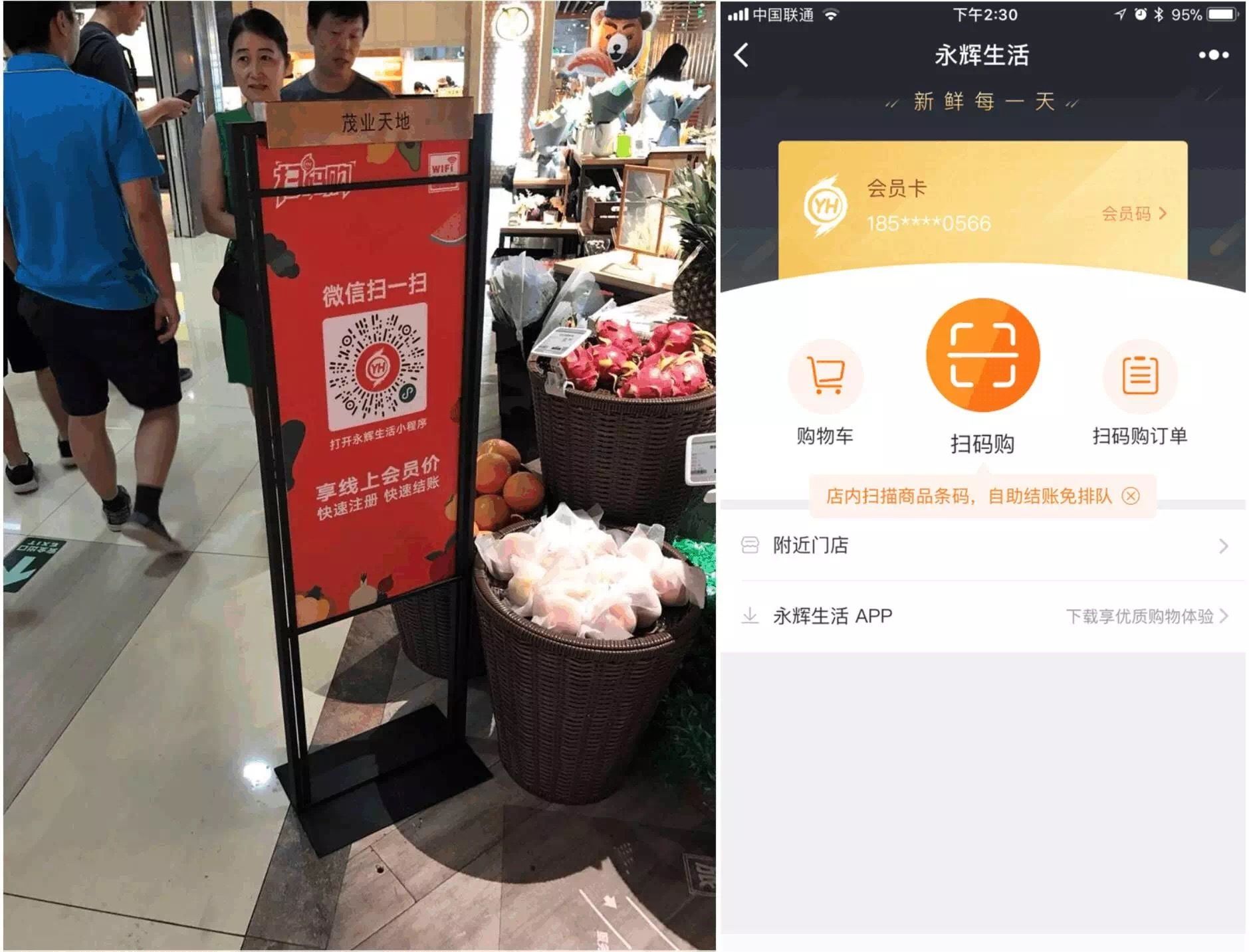 免去冗長的排隊,顧客在店內(nèi)通過「YH 永輝生活+」小程序掃描商品的二維碼,就能將商品添加至小程序的「購物車」里,選購?fù)戤吅?,直接在小程序里使用微信支付就能一鍵買單。節(jié)約人力成本的同時提高消費者體驗,同樣是掃碼支付,小程序的掃碼支付成功率到達94%,高于 APP。