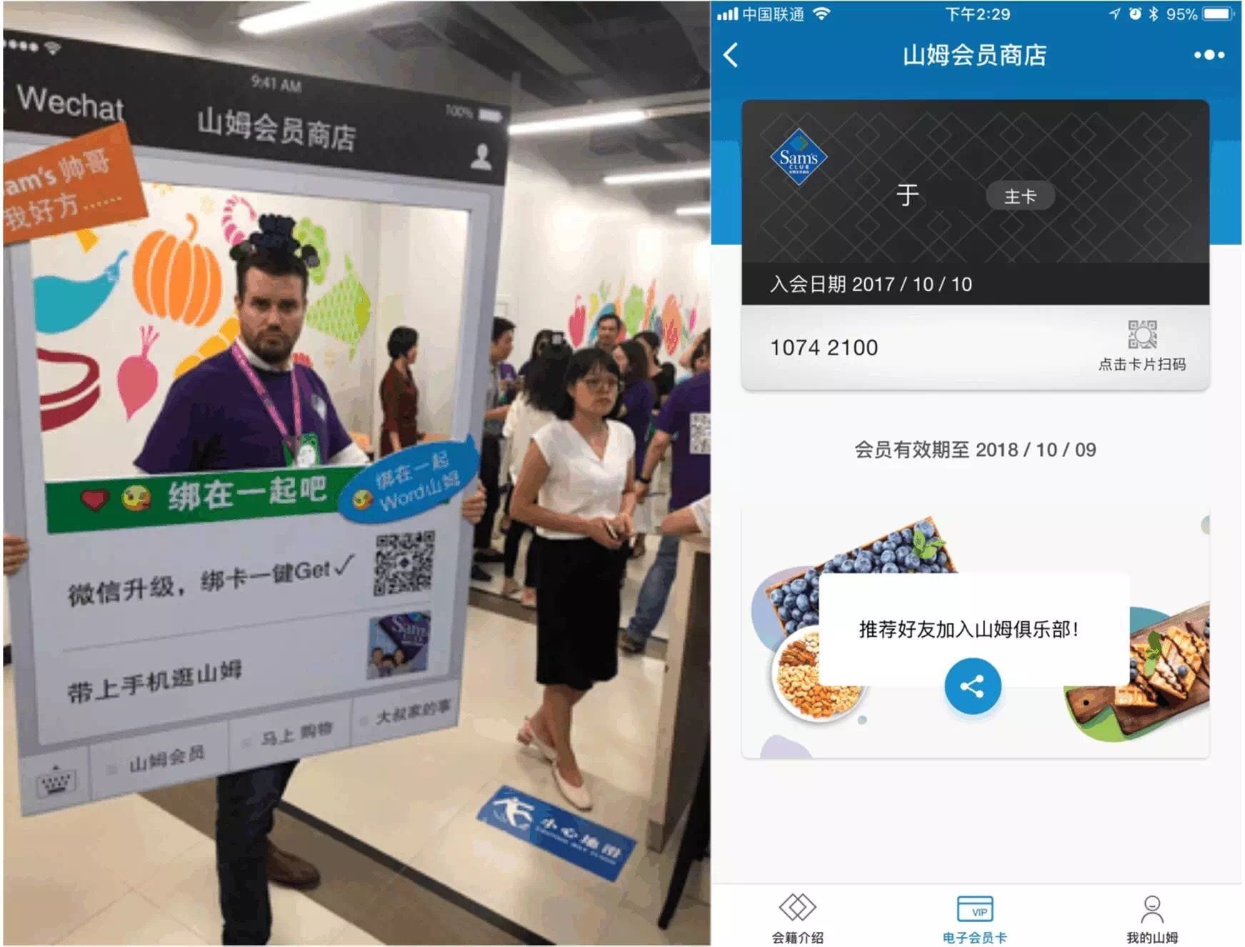 不消線下管理,在「山姆會員商店 SamsClub」小程序里就能管理會員。同時,小程序結(jié)合公眾號進行數(shù)字化會員運營,通過伴侶間的社交保舉進行會員招募,9 月上線到現(xiàn)在,新增付費會員 20%。