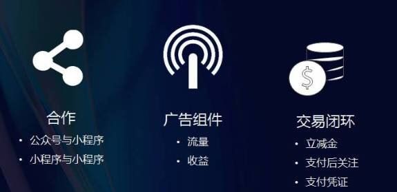 我們不但將加強公眾號與小程序,小程序與小程序的連接,,也將提供廣告組件,讓商家獲得更多的流量和收益。此外,還會推出更多的促進交易閉環(huán)的工具,例如「立減金」、「支付后關(guān)注」、「支付憑證」等。