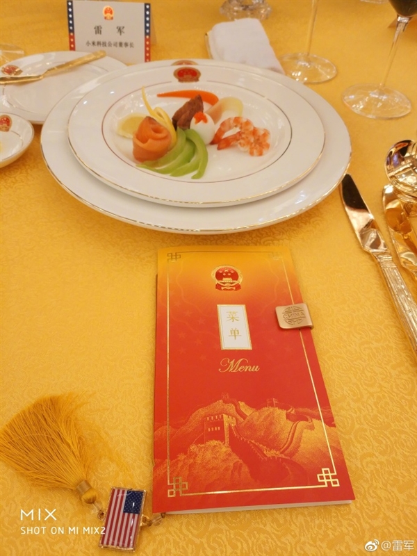 9 日晚間,雷軍在微博上曬出了國宴邀請函和餐單。從圖中來看,此次國宴提供了冷盤、主菜、點心、水果冰激凌、咖啡、茶以及長城干紅、干白等飲品。主菜共計六道:椰香雞豆花、奶汁焗海鮮、宮保雞丁、番茄牛肉、上湯鮮蔬、水煮東星斑。