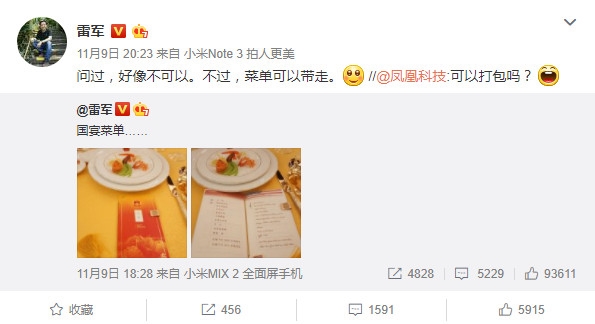 還有網(wǎng)友好奇:“可以打包嗎?”沒想到,雷軍也進行了回復:“問過,好像不成以。不過,菜單可以帶走?!?/p>