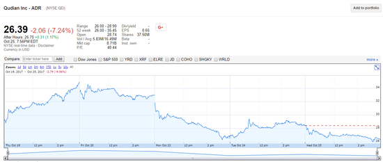 網(wǎng)易科技訊10 月 26 日消息,在經(jīng)歷前三天大漲大跌之后,今日趣店(NYSE:QD)下跌7.24%,,報收于26. 39 美元,總市值87. 1 億美元。