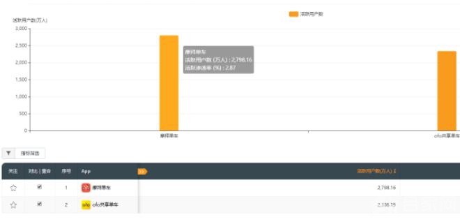 QuestMobile數(shù)據(jù)還顯示,在 10 月第一周,摩拜單車周活躍用戶量達(dá) 2798 萬,ofo則以 2336 萬排名次席,摩拜領(lǐng)先超 450 萬人,摩拜領(lǐng)先幅度達(dá)20%?! ?/p>