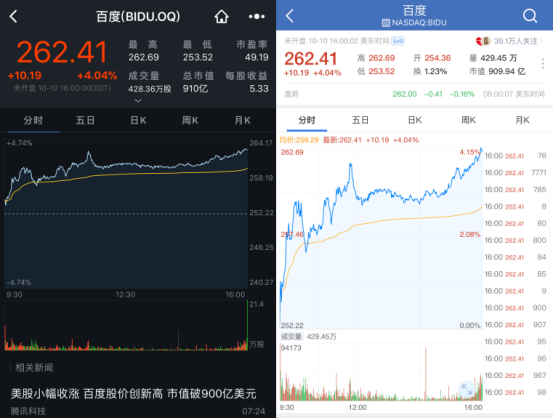 本錢的橄欖枝開(kāi)始伸向近幾年處于低潮狀態(tài)的百度。在Q2財(cái)報(bào)之中,百度營(yíng)收同比增長(zhǎng)14%、凈利潤(rùn)達(dá)44.5億元,證明百度的廣告模式依然是華爾街投資人最安心的盈利模型。而在人工智能還沒(méi)有出現(xiàn)大平臺(tái)時(shí),重估百度的價(jià)值已勢(shì)在必行。十一之后,百度股價(jià)猶如“打雞血”猛竄,首度叩開(kāi)900億美元大關(guān),離千億市值就差幾個(gè)漲停,硬是把幾個(gè)月前叫陣的京東甩出300多億美金。