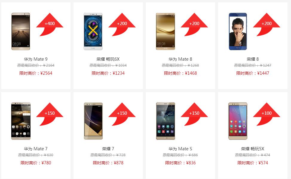主要針對(duì)華為旗下HUAWEI Mate7、HUAWEI Mate8、HUAWEI Mate9、HUAWEI MateS幾款機(jī)型,最高加價(jià) 200 元進(jìn)行回收。