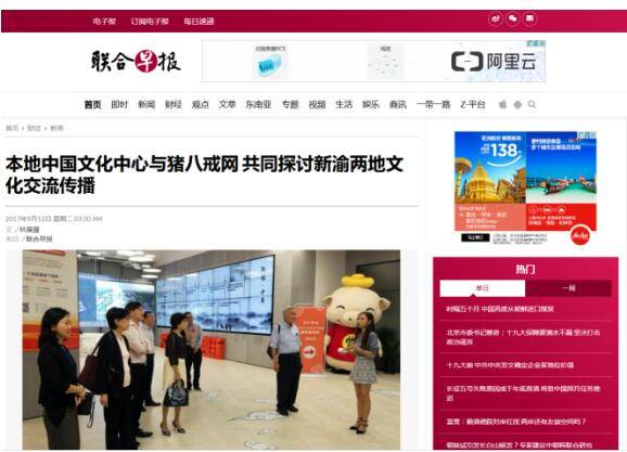 同時(shí)聯(lián)合早報(bào)也曾在 9 月 12 日刊發(fā)了《當(dāng)?shù)刂袊幕行呐c豬八戒網(wǎng)共同探討新渝兩地文化交流傳播》的報(bào)道。文章中提到“重慶互聯(lián)網(wǎng)龍頭企業(yè)豬八戒網(wǎng)和新加坡中國文化中心雙方探討了合作的可能性,初步建議包孕通過豬八戒網(wǎng)與新加坡報(bào)業(yè)控股早前成立的合資公司ZBJ-SPH旗下的ZomWork.com網(wǎng)站,舉辦一場“中國文化傳播大賽”。