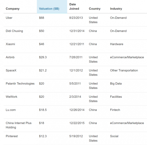 全球獨(dú)角獸公司榜單:Uber第一 滴滴小米分列二三名