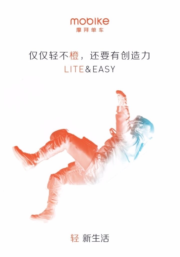 從宣傳海報來看,新款摩拜單車屬于Lite版本,保存了經(jīng)典的橙色元素,更加輕便舒適。