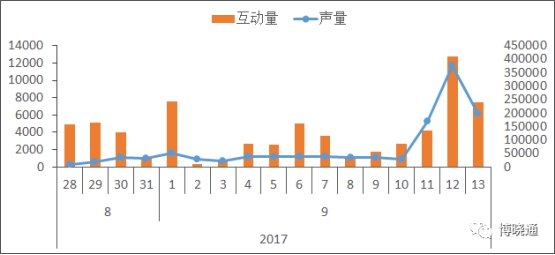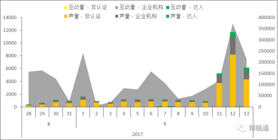 差別日期所產(chǎn)生的微博互動(dòng)量和聲量(數(shù)據(jù)來源:博曉通)