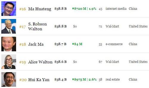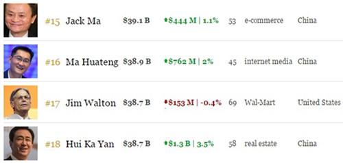在本地時間 9 月 18 日美國股市收盤之后,從福布斯實時富豪榜上的數(shù)據(jù)來看,馬云的財富為 391 億美元,在福布斯實時富豪榜上排在第 15 位,在中國富豪中則排在第一位。同一時期馬化騰的財富為 389 億美元,在福布斯實時富豪榜上排在第 16 位;許家印的財富為 387 億美元,,在福布斯實時富豪榜上排在第 18 位。(辣椒客)