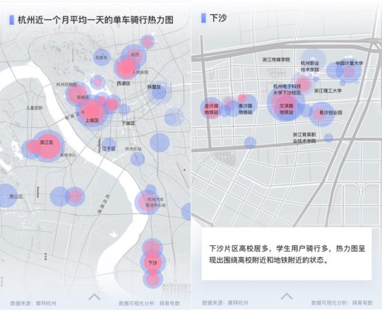 按照網(wǎng)易云、摩拜單車發(fā)布的《杭州城市騎行大數(shù)據(jù)》(下稱陳訴)(陳訴H5:https://bigdata.163.com/bikedate?from=timeline&isappinstalled=0 )顯示,杭州最熱門的騎行區(qū)域位于西湖東邊及南邊、古翠黃龍一帶、濱江地鐵沿線、下沙學校集中區(qū)等。
