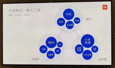 雷軍認(rèn)為,小米既是一家手機(jī)公司,又是互聯(lián)網(wǎng)公司,還是新零售公司。小米模式的鐵人三項(xiàng)是硬件+新零售+互聯(lián)網(wǎng)。