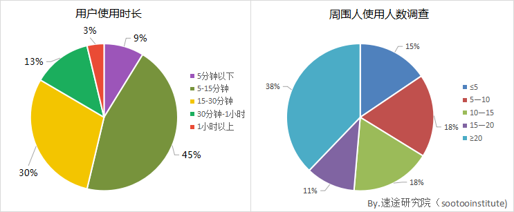 速途研究院統(tǒng)對用戶使用移動問答社區(qū)的習(xí)慣以及周圍親人、伴侶的使用情況進(jìn)行了調(diào)查。數(shù)據(jù)顯示使用時間在15分鐘以內(nèi)的人數(shù)占到了一半以上,15分鐘到30分鐘的占近30%,而30分鐘以上的用戶僅僅占到了15%擺布。與社交類APP差別的是,用戶使用移動問答社區(qū)的目的是為了尋找本身需要的知識,因此不會停留太多的時間。