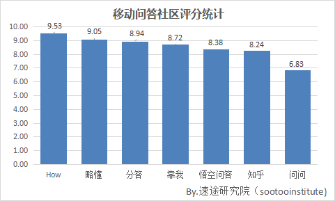 從速途研究院統(tǒng)計的移動問答社區(qū)APP評分來看,移動問答社區(qū)APP總體評分狀況欠安。其中9分以上的僅有How和略懂;8分段的有分答、靠我、悟空問答、知乎;8分以下的只有問問。移動問答社區(qū)作為知識共享平臺,與細(xì)分領(lǐng)域的興趣人群以及知識的專業(yè)度有著密切的聯(lián)系。悟空問答、知乎、問問都擁有著大量的用戶,但同時也是重口難調(diào),甚至也可能充斥著各種低俗等問題。肅清社區(qū)氛圍,改善用戶體驗,問答社區(qū)的整體辦事水平還有待提高。