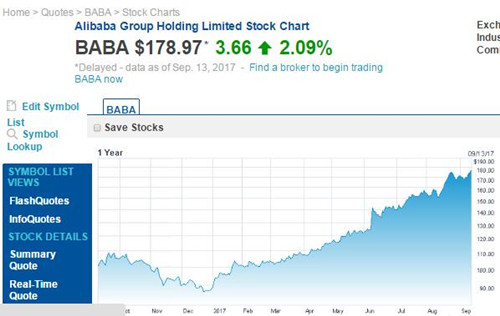無論是收盤時的178. 97 美元,還是盤中最高的179. 1 美元,均創(chuàng)下了阿里巴巴自 2014 年 9 月IPO以來的新高,此前最高收盤價是本周二收盤時的175. 31 美元,盤中最高價則是 8 月 24 日的 177 美元。