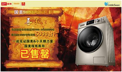 9 月 9 日,國美超級(jí)福利日完美收官,洗衣機(jī)品類殺出一匹“黑馬”——價(jià)值 4198 元的小天鵝TD100-14522WDG智能化變頻滾筒洗衣機(jī)一天賣出 5500 臺(tái),奪得“當(dāng)日洗衣機(jī)單品銷售量冠軍”。