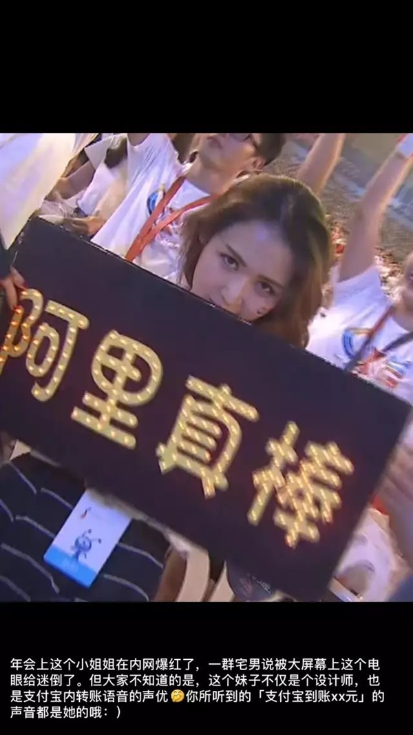 阿里年會(huì)上,有員工將展妍對(duì)著鏡頭“放電”的大屏幕照片放到了內(nèi)網(wǎng),俘獲一大群技術(shù)宅,這條“尋人帖”在阿里集團(tuán)和伴侶圈火速傳開(kāi)。