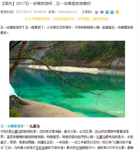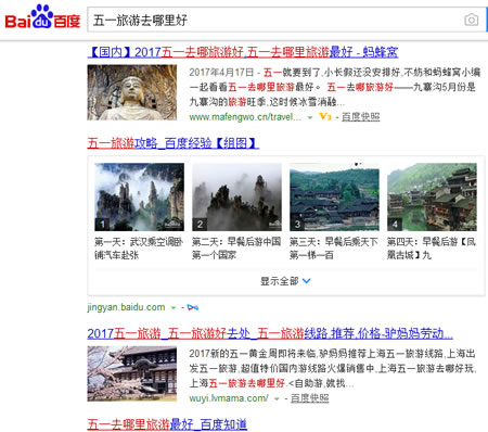 可以看到這個(gè)頁(yè)面列舉了一些適合五一旅游的景點(diǎn)。分析完我們要思考,如果我們想優(yōu)化一個(gè)這樣的關(guān)鍵詞,排名超越這個(gè)頁(yè)面,該怎么辦呢?