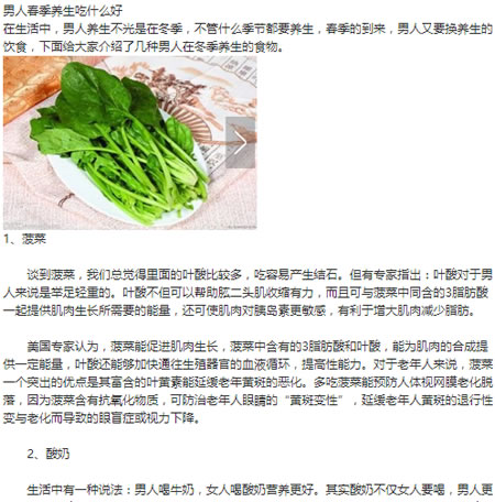 每一塊的內(nèi)容都可以從差別的網(wǎng)站獲取,好比“男人春季養(yǎng)生吃什么好”就可以從如下圖所示獲?。?/p>