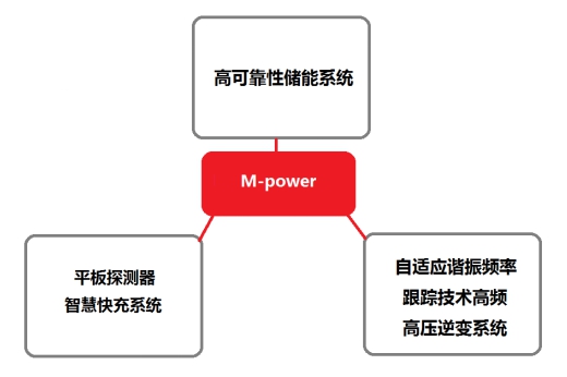 M-power由高可靠性儲(chǔ)能系統(tǒng)(以下簡(jiǎn)稱“儲(chǔ)能系統(tǒng)”)、自適應(yīng)諧振頻率跟蹤技術(shù)高頻高壓逆變系統(tǒng)(以下簡(jiǎn)稱“自適應(yīng)高頻逆變系統(tǒng)”)、平板探測(cè)器智慧快充系統(tǒng)組成。