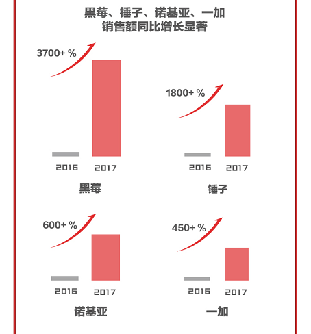 黑莓、夏普這次上榜,除了趕上了京東 818 手機節(jié)和3C開學季這樣的天時,還有全面屏手機、安適商務手機國內市場還處于空缺狀態(tài)的地利,當然,也離不開選擇京東進行獨家首發(fā)包銷的人和。事實上,此前發(fā)布的GfK陳訴也顯示, 2017 年上半年,京東手機零售額線上市場份額達到48%,幾乎占據豆剖瓜分,成為線上市場增長最核心的力量。相信跟京東平臺建立深度合作伙伴關系后,黑莓和夏普也有望釋放最大的市場潛力,在 2017 年的下半年持續(xù)給市場帶來驚喜。