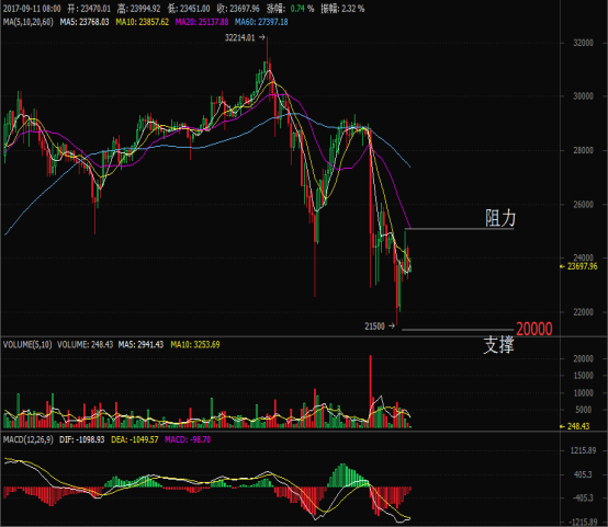 按照國(guó)內(nèi)知名的數(shù)字資產(chǎn)交易平臺(tái)OKCoin幣行的數(shù)據(jù)顯示,比特幣昨天(9月10日)價(jià)格在開(kāi)市后延續(xù)此前的下跌勢(shì)頭繼續(xù)向下運(yùn)行,最低跌至21500附近后止跌回升,至收盤(pán)收復(fù)當(dāng)日大部分跌幅,最終陰線(xiàn)報(bào)收,跌幅3.73%。截止今日發(fā)稿前,價(jià)格比來(lái)交投于24300附近。