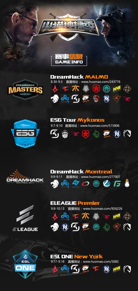 DreamHack蒙特利爾站的角逐即將來臨,同時(shí)期還有ESG巡回賽米克諾斯站和ELEAGUE Premier聯(lián)賽開戰(zhàn),鎖定火貓直播,欣賞精彩角逐的同時(shí)還能參與活動(dòng)贏取外設(shè)大獎(jiǎng)!9月CS:GO賽事不竭歇!火貓CS:GO獨(dú)播季!讓我們盡情狂歡吧!