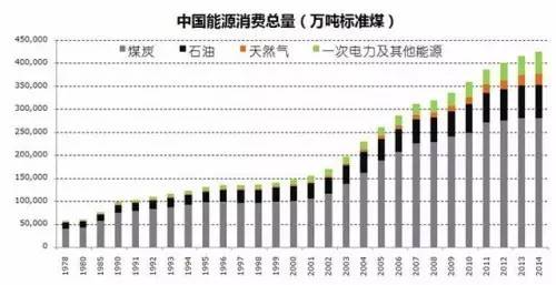 從1978年到2014年,中國(guó)能源使用總量增長(zhǎng)了9倍。可見(jiàn),財(cái)富增長(zhǎng)與能源使用水平密切相關(guān)。