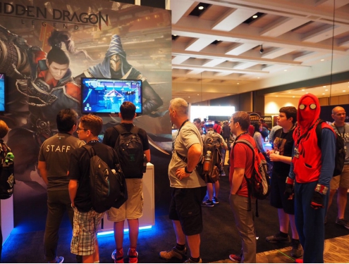 PAX West在綠洲游戲《Hidden Dragon Legend(隱龍傳)》展臺(tái)前排隊(duì)的玩家