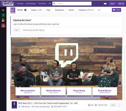 Twitch的PAX West直播頻道開(kāi)啟后,不雅觀看人次已經(jīng)過(guò)億,比展會(huì)的線(xiàn)下客流量更高