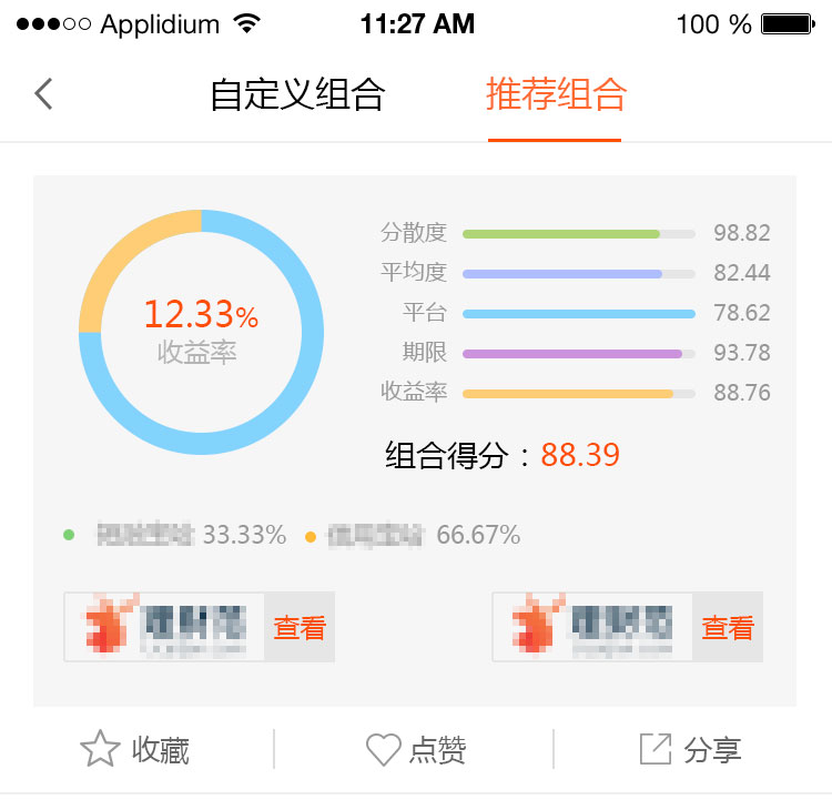 為解決“懶人理財(cái)”和投資收益最大化,菜迷網(wǎng)為滿足客戶需求,增加了投資組合欄目,用戶可以按照本身的需求,享受菜迷網(wǎng)組合分析辦事,實(shí)現(xiàn)本身本金最大利益化跨平臺分散投資的方式。在投資組合中,用戶可以直不雅觀的看到本身的資產(chǎn)在分散度、均勻度、平均期限和收益率等維度的分?jǐn)?shù),在平衡收益的基礎(chǔ)上,可以獲得針對性的參考指引,優(yōu)化自身的投資組合結(jié)構(gòu),實(shí)現(xiàn)多快好省的智能化投資。