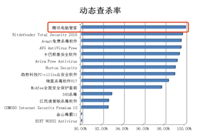 (圖:騰訊電腦管家在賽可達“動態(tài)測試”中排名第一)