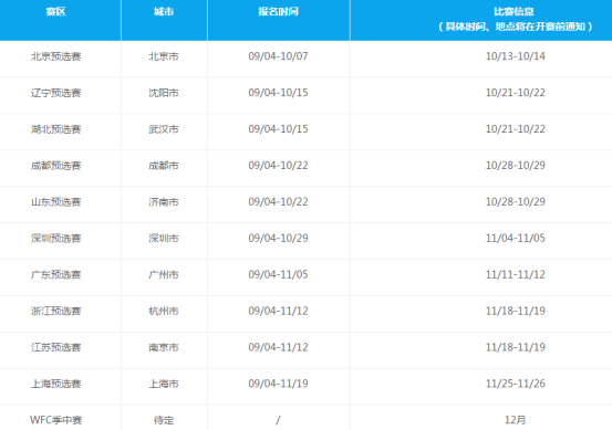 以上為本次預(yù)選賽的賽事相關(guān)信息,詳細(xì)信息請前往WFC官方網(wǎng)站查詢。WFC官網(wǎng)地址: