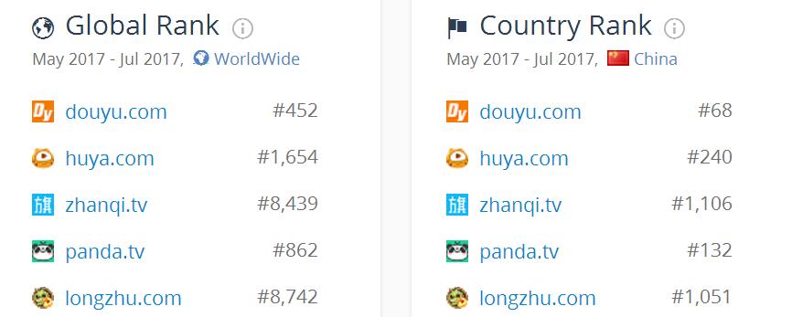 中國部分直播網(wǎng)站排名(世界和中國)(數(shù)據(jù)來源:SimilarWeb)