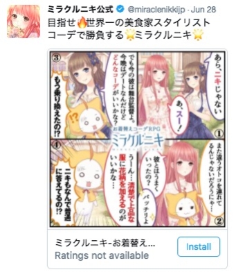 為了更迎合日本本土的玩家的口味,CLICK TECH不僅單只是采用一般素材來(lái)做Banner。抓住了暖暖自己的換裝主題,使用漫畫式的新穎廣告風(fēng)格作為噱頭。在提高點(diǎn)擊率的同時(shí),保證下載率的增加也是CLICK TECH為暖暖進(jìn)一步取得更多下載量的方法之一。