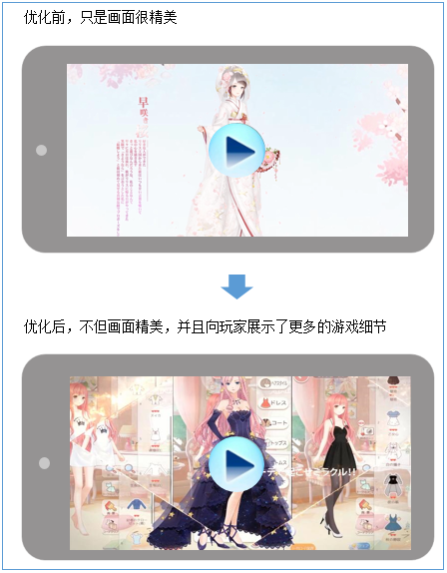 視頻廣告是一套華麗而極具攻擊力的招數(shù),它聚集了《暖暖》核心玩法,絢麗裝束,以動(dòng)感的形態(tài)展示在用戶面前,魅力十足。經(jīng)過(guò)分析,調(diào)整投放策略,利用玩家真實(shí)gameplay為核心內(nèi)容,配合視頻配景優(yōu)化,制作創(chuàng)意素材進(jìn)行視頻投放,整體點(diǎn)擊率提升至超過(guò)20% ,次日留存率大幅提升至65%。