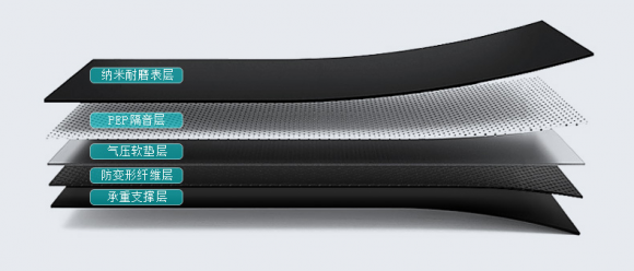 6 塊內(nèi)置高彈硅膠塊均勻分布于跑臺(tái)兩側(cè),增加跑臺(tái)彈性,弱化震幅,減少反彈力,掩護(hù)膝蓋。