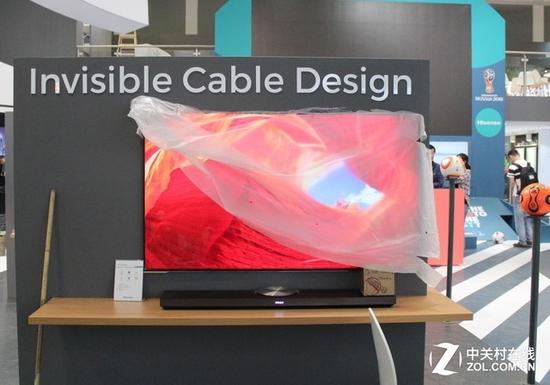 整機分為屏幕與電視主機兩部分。從圖片來看,整個屏幕非常薄,并且可以與墻壁完全貼合,超窄的邊框設(shè)計,使得屏占比非常高。下方主機部分為黑色扁平的長方體,中間的銀白色圓盤應(yīng)該是用來把持電視或調(diào)節(jié)音量,設(shè)計感非常強。