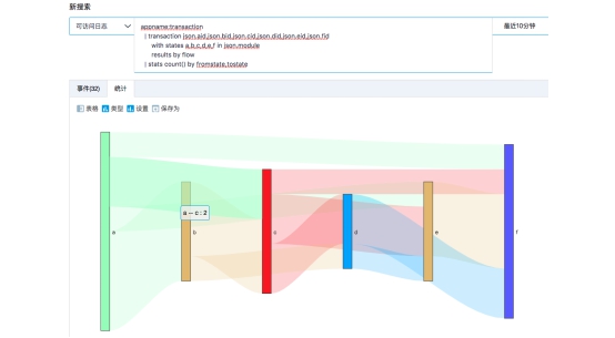 通過對transaction指令的flow統(tǒng)計,可以將日志轉(zhuǎn)換成from-to的統(tǒng)計值,進而繪制?;鶊D,展示數(shù)據(jù)流向內(nèi)容: