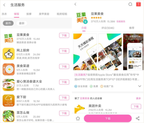 而隨著網(wǎng)友對秋季養(yǎng)生的注重,飲食類APP也受到了大眾的追捧。在 360 手機助手平臺上,飲食養(yǎng)生類APP已有非??刹谎庞^的數(shù)量,而隨著夏秋換季來臨,相關(guān)APP的下載量迅速飆升。到目前為止,已有幾十款A(yù)PP的下載量達到上萬級別,如其中的“豆果美食”表示更是亮眼,APP下載量已高達三千多萬!