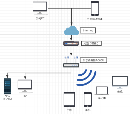(目前家中的網(wǎng)絡(luò)結(jié)構(gòu)差不久不多是這個(gè)樣子)