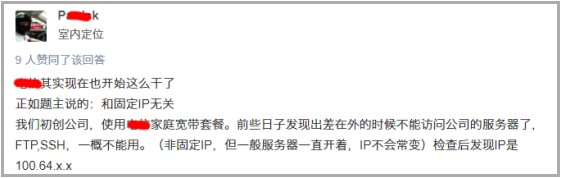 這下坑爹了,豈不是外網(wǎng)拜候都完蛋了?趕緊百度了一下,貌似遇到這類情況的人還挺多的,據(jù)說是因?yàn)镮Pv4地址不足的原因,運(yùn)營(yíng)商偷偷地加裝了NAT設(shè)備,而100.72.x.x/100.64.x.x正是用于運(yùn)營(yíng)商級(jí)NAT內(nèi)網(wǎng)保存段,也就是說現(xiàn)在確實(shí)是釀成了局域網(wǎng)!