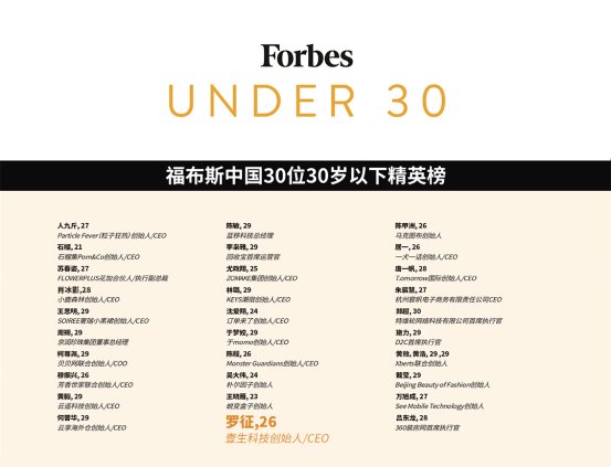 2017年福布斯在深圳公布了2017中國(guó)“30位30歲以下精英”榜單,涵蓋了10個(gè)差別領(lǐng)域年輕精英,羅征入選零售和電商榜單。