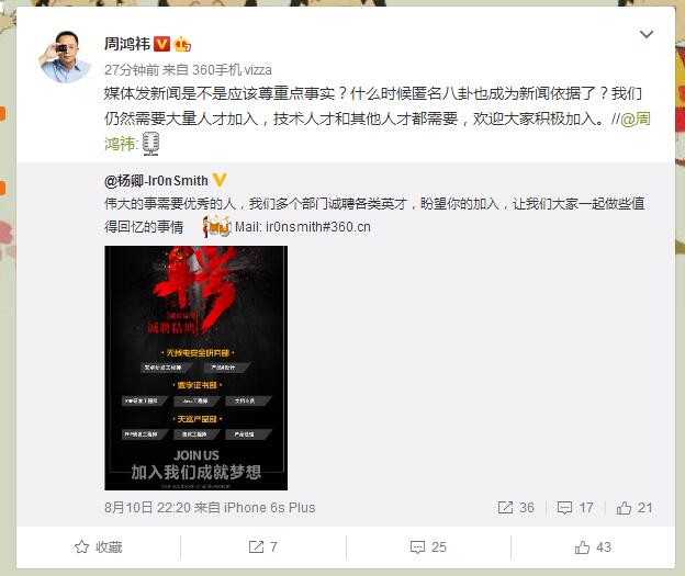 巨人網(wǎng)絡(luò)通訊聲明:本文標(biāo)題《周鴻祎回應(yīng)360大規(guī)模裁員事件:仍然需大量人才》,本文關(guān)鍵詞 周鴻,祎,回應(yīng),360,大規(guī)模,;如發(fā)現(xiàn)本文內(nèi)容存在版權(quán)問題,煩請(qǐng)?zhí)峁┫嚓P(guān)信息告之我們,我們將及時(shí)溝通與處理。本站內(nèi)容系統(tǒng)采集于網(wǎng)絡(luò),涉及言論、版權(quán)與本站無關(guān)。