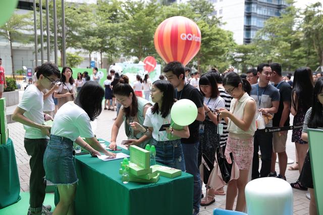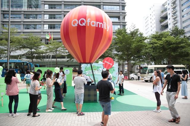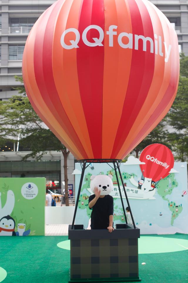 活動當(dāng)天,遠(yuǎn)遠(yuǎn)就看到騰訊大廈北廣場上從天而降的QQfamily熱氣球。說走就走已經(jīng)過時了,說飛就飛才是最in的操作。于是一波鵝廠妹子小哥涌向熱氣球,帶上QQfamily道具頭套賣起了萌,放飛的表情美滋滋~